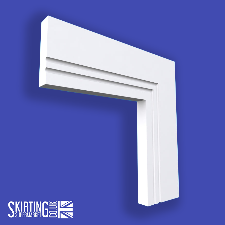 The Square Edge C Grooved 2 MDF Architrave from Skirting Supermarket combines a modern square edge profile with two subtle C grooves to create a striking yet understated finish. This design offers a clean, contemporary look with added depth, making it a perfect choice for both modern and traditional interiors.